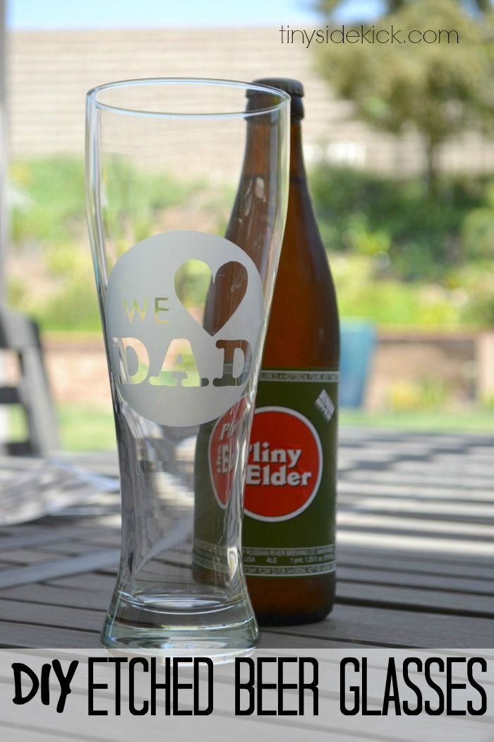 Habt ihr neulich unseren Blog-Post zum Thema Satinieren gesehen? Da haben wir euch gezeigt, wie ihr Auflaufformen, Glasschüsseln, Tortenplatten etc. dauerhaft mit eurem eigenen Monogramm oder Spruch versehen könnt, damit nichts mehr verloren geht. Die gleiche Technik kann man natürlich auch zum Vatertag anwenden und ein Bierglas satinieren:-) Das haben die Jungs + Mädels von tinysidekick z.B. schon mal gemacht, schaut mal auf dem Foto.