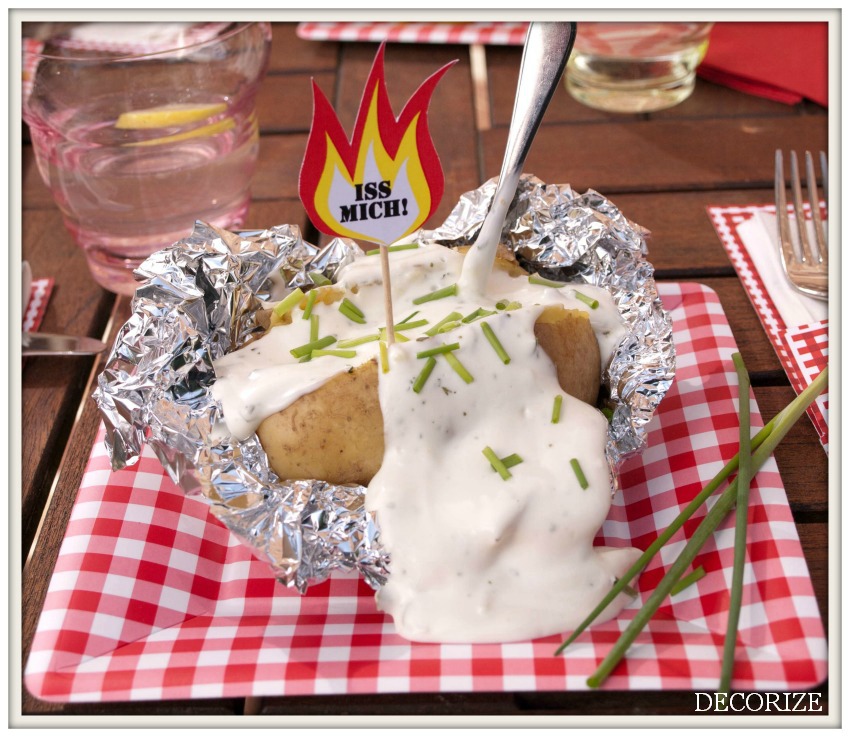 Ganz viel weitere Ideen fürs BBQ Deluxe findet Ihr dann in unserem Buch „Wir feiern!“ (wir hoffen auf einen goldenen Oktober mit Grill-Wetter!) mit Printables von Einladung über Deko wie zum Beispiel diese coolen Potatoe-Schalen und Grill- mich-/Iss-mich-Piekern bis zu tollen DIY-Ideen wie diese Wagenräder. Da gibt’s dann auch das Geheim-Rezept zur BBQ-Sauce!