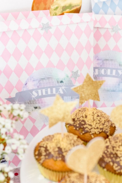 Außerdem gab es natürlich auch noch Mitgebsel-Tütchen mit selbstgestalteten Etiketten und noch ganz viele, tolle Disco-Details, die ihr euch unbedingt anschauen müsst bei Titatoni. Und auch das Entertainment-Programm für die tanzwütigen Disco-Queens ist ein absoluter Knaller, hüpft unbedingt mal rüber, um mehr zu sehen und zu lesen!