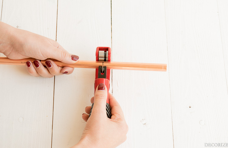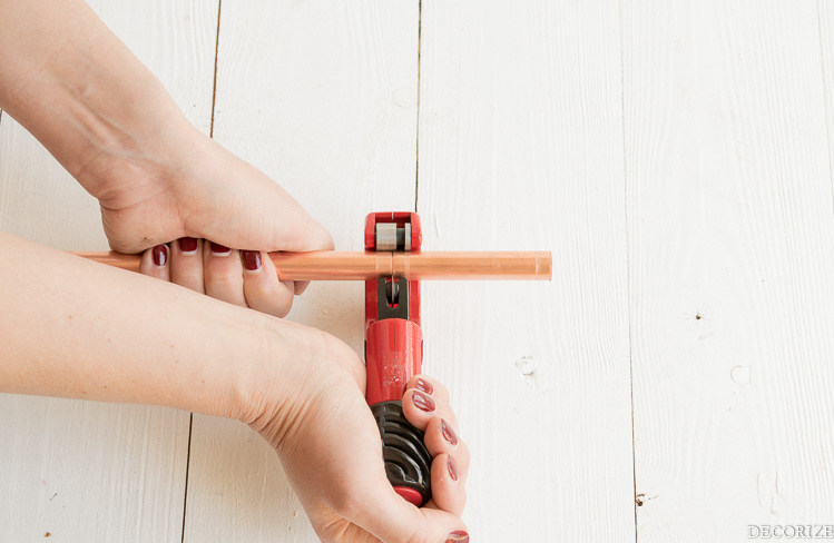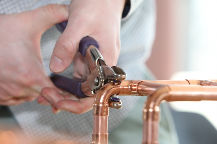 Zum Abschneiden spannst Du das Kupferrohr an der Markierung in den Rohrschneider.
