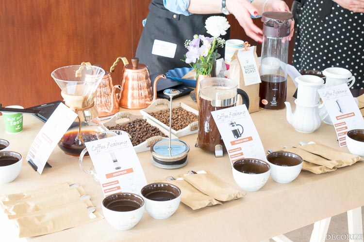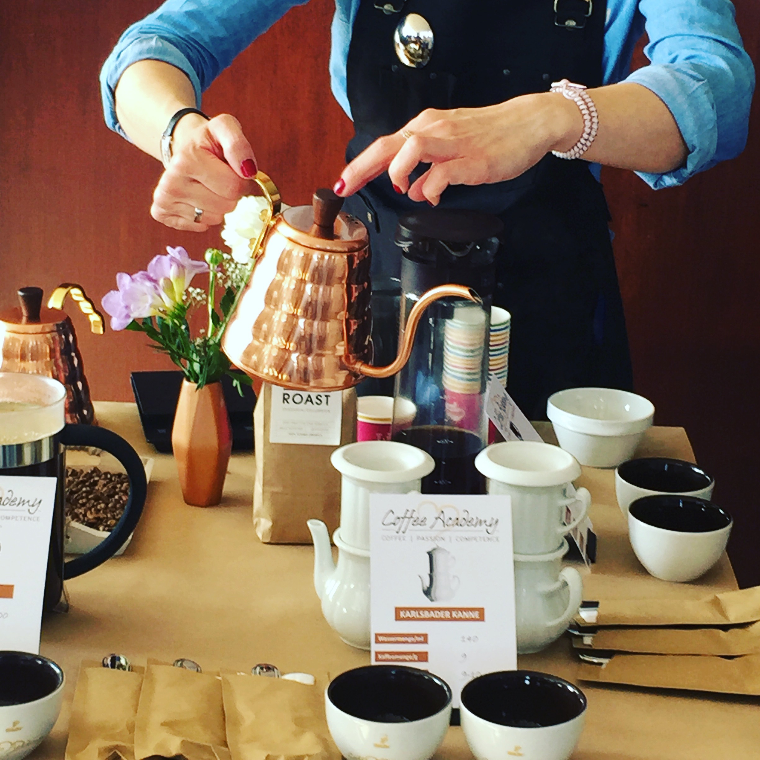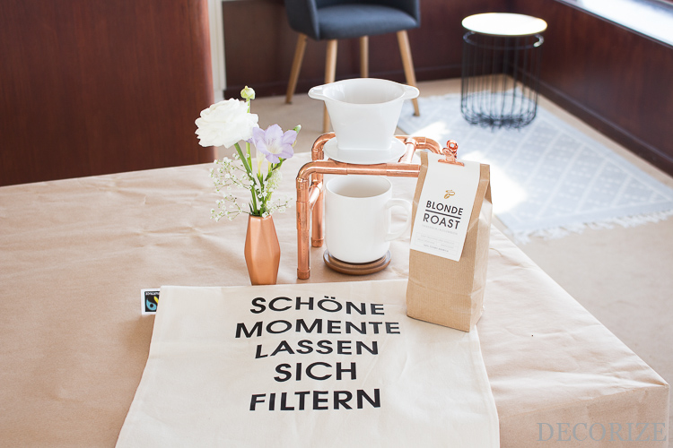 Mindestens genauso toll wie der Kaffee selbst war übrigens das Designkonzept der Veranstaltung: alle Accessoires und Tools waren aus Kupfer bzw kupferfarben. So hübsch! Die Kaffeekannen, die Blumenvasen und sogar die kleinen Büroclips am Kaffee. Und natürlich unsere DIY-Drip Station, aber zu der kommen wir gleich.