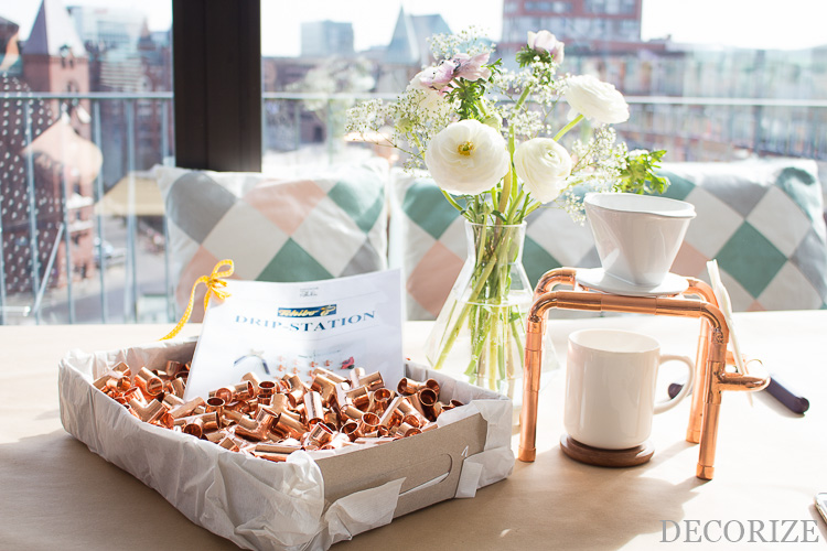 Eingeladen hatte uns Tchibo und zwar nicht nur zum Kaffee trinken sondern zum Werkeln: wir haben einen DIY-Workshop gegeben und mit den Gästen eine “Coffee Drip Station” aus Kupferrohr gebaut.
