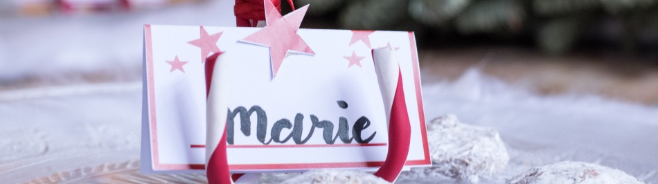 Und jetzt kommt das Beste: Wenn Ihr ganz viele, kleine Zuckerstangen gedreht und gebrannt habt, könnt Ihr immer drei davon mit einem Schleifenband mittig zusammenbinden, sie gleichmäßig wie 3 Stativbeine ausrichten und aufstellen. Heraus kommt ein super niedlicher kleiner Ständer für Platzkärtchen oder Menükärtchen für Eure Weihnachtstafel! Ihr braucht nur noch die Namen Eurer Gäste oder einen lieben Weihnachtsgruß auf kleine Kärtchen schreiben und sie in Euren Kartenhalter setzen.