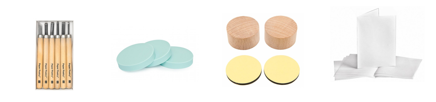 Schnitzwerkzeug* Stempelgummi* Holzstempelblock* Transparentpapier*