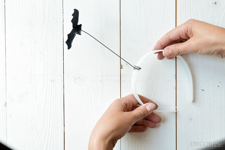 6.) Platziere nun deine Fledermaus-Drähte am Haarreifen indem du sie mit dem unteren Teil des Drahtes einige Male fest herumwickelst.