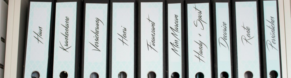 Nun ja, es nützt ja nix, nun sitzen wir mal wieder stundenlang dran. Und dieses Mal machen wir es gleich richtig und sortieren nicht nur Akten und Papiere in Ordner, sondern verpassen den Ordnern auch gleich ein noch ein kleines kosmetisches Facelift mit neuen Ordnerrücken.