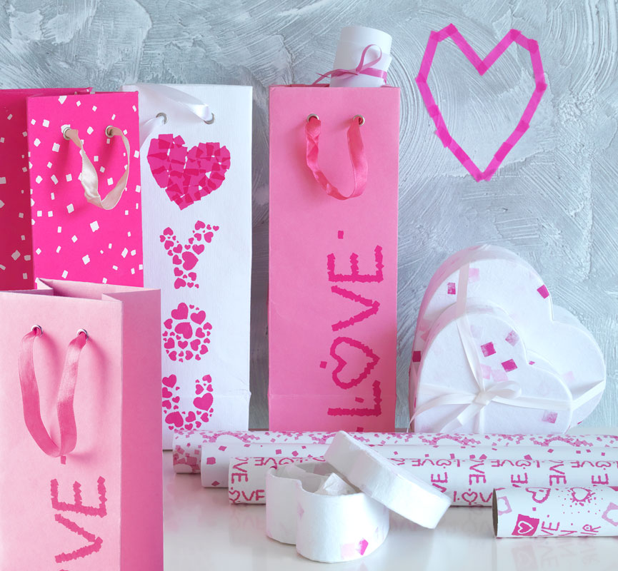 Diese rosa-pinkfarbene Schnipsel dekorieren in herzlicher Weise nicht nur den Valentinstagstisch, sondern auch kleine Geschenke mit den passenden Verpackungen. Ein romantisches Dinner zu Zweit oder ein gemütliches Frühstück im Bett können wir uns super gut mit diesem Geschirr vorstellen. Dazu haben wir in der nächsten Zeit ein paar nette kleine Ideen für Euch, wir sind schon kräftig am Tüfteln. Apropos ‘Frühstück im Bett’: das passende Bettwäsche-Set, Plaid und Kissen gibt’s auch!