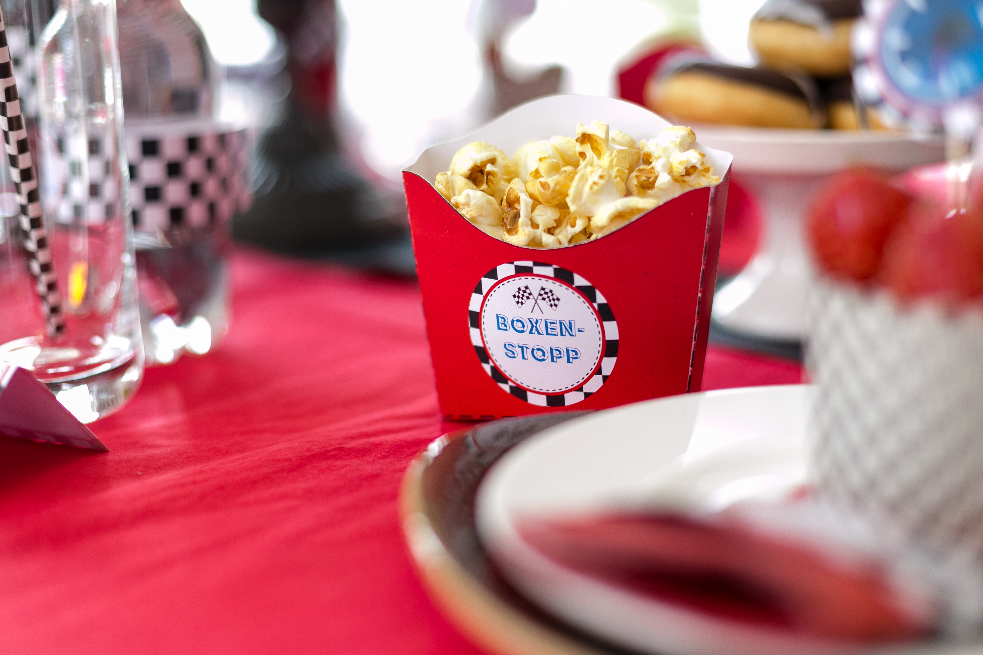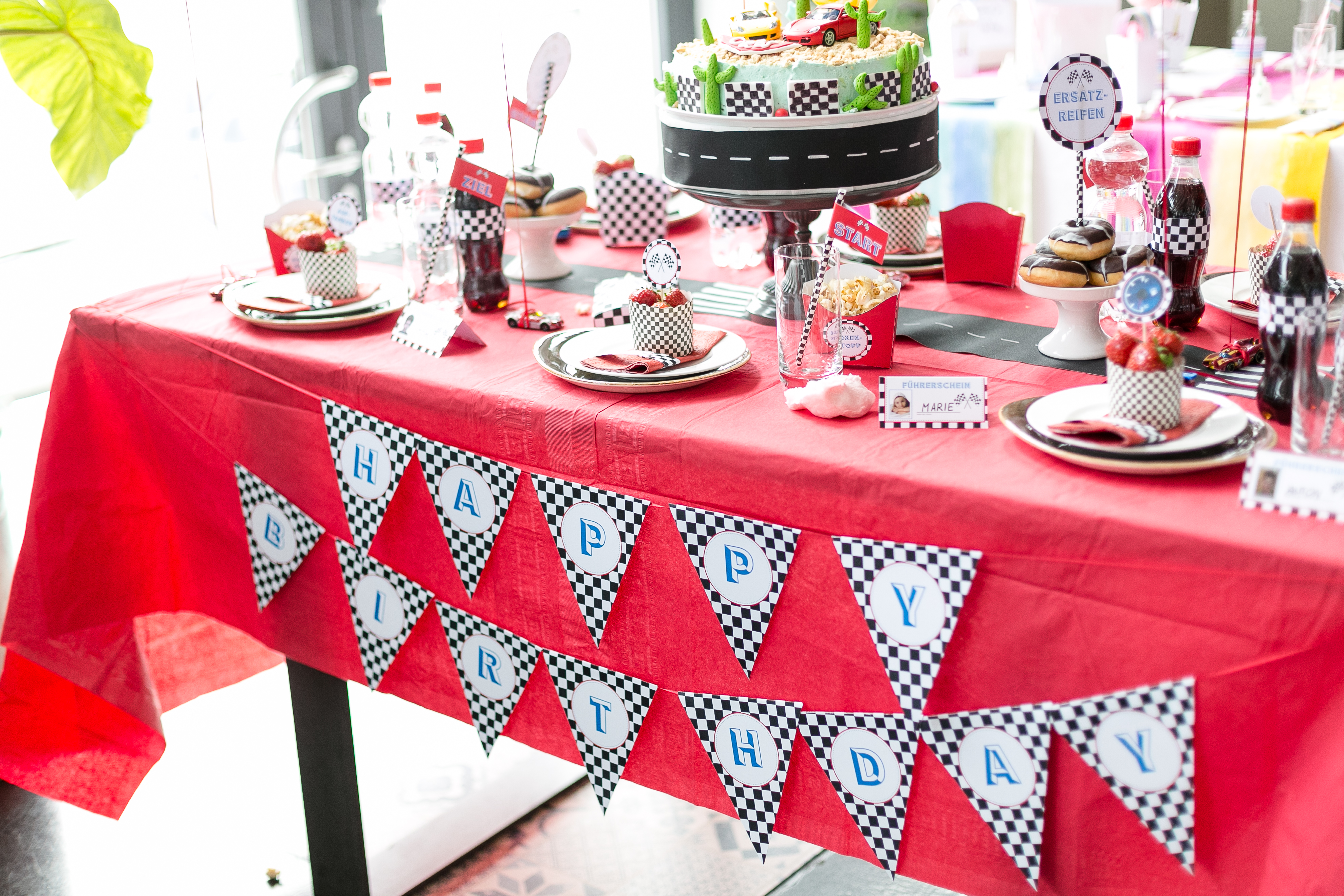 Wenn Ihr den Tischläufer habt, fehlt nicht mehr viel zu einer ausgelassenen Autorennfahrer-Kindergeburtstagssause. Mit ein paar kleinen Accessoires wie z.B. Food-Piekern, Servietten-Banderolen oder einer Girlande habt Ihr eigentlich schon so ziemlich alles zusammen.