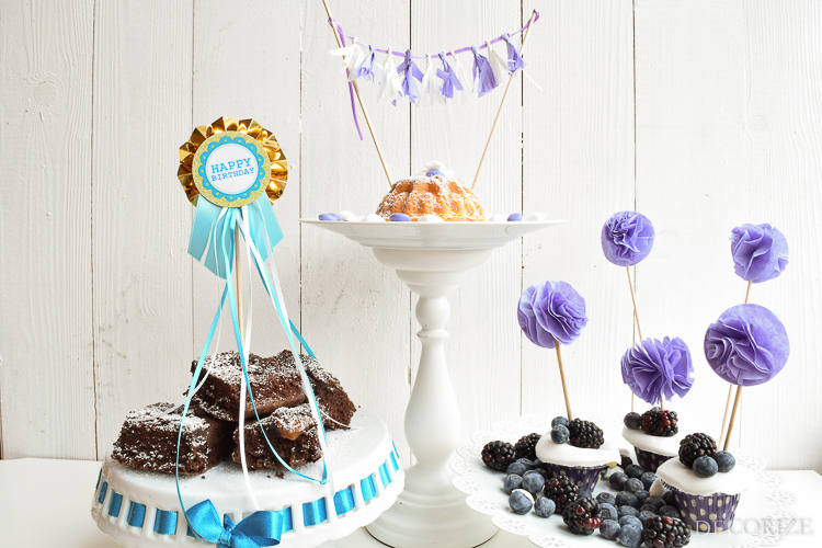 Also kann unsere Deko-Leidenschaft komplett in Papier ausgelebt werden und weiter nach oben wandern, nämlich AUF den Kuchen und die Muffins. Und da gibt’s so viele tolle Deko-Ideen, so dass zur Zeit bei uns nichts “oben-ohne” auf den Geburtstagstischen landet.