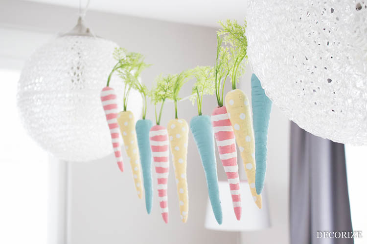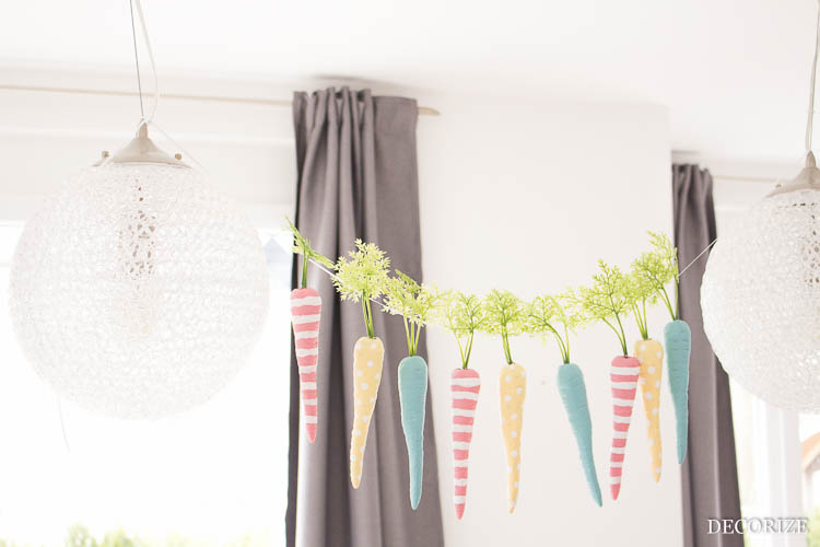Wir haben unsere Möhrengirlande schon mal probeweise über dem Esstisch aufgehängt und natürlich sogleich beschlossen, dass es sich ja eigentlich auch gar nicht mehr lohnt, sie wieder abzunehmen, es sind ja schließlich nur noch 2,5 Wochen bis Ostern ;-)