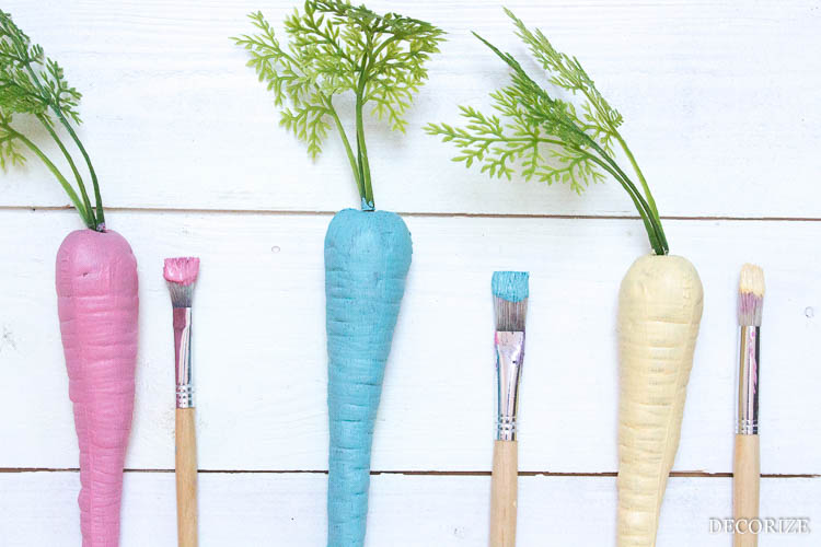 Aber zum Glück gibt es ja Pinsel und Farben, so dass aus möhrenfarbigen Möhren ganz schnell hübsche pastellige Möhren werden!