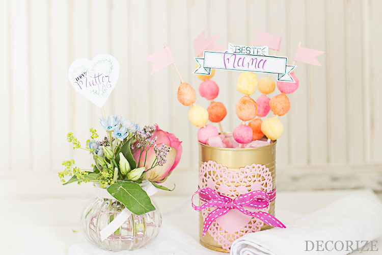 Alle Mamis dürfen sich freuen, es ist Verwöhnzeit angesagt. Aber vergessen wir nicht unsere eigenen Mamis, denn denen haben wir schließlich alles zu verdanken, was wir heute sind, nicht wahr? Wir haben Euch eine kleine DIY-Idee mitgebracht, die Ihr Eurer Mami zum Muttertag schenken könnt. Und 3 kleine Freebies, von denen Ihr Euch etwas aussuchen und Euer Geschenk damit verschönern könnt.