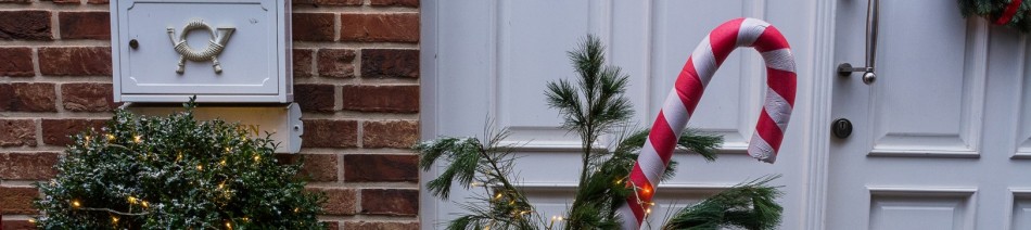Das ist mal genau die Größe Zuckerstange, die wir mögen: riesig! Zwar schmeckt sie nicht so gut wie die kleinen, aber dafür macht sie vor der Haustür richtig was her zur Weihnachtszeit. Und deshalb war sie eines der vier Projekte auf unserer Kreativ-Party XMAS 2017. Wie immer gibt`s für alle, die beim Workshop nicht dabei sein konnten, die vier DIYs jetzt auch hier im Blog – und starten tun wir mit eben dieser Riesen-Outdoor-Zuckerstange.