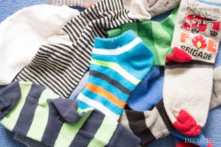 Bisher landeten die verwaisten Socken bei uns immer in einem einfachen Korb auf der Waschmaschine und fristeten dort ihrem Dasein. Die meisten Gegenstücke tauchen bei uns tatsächlich nie wieder auf, und es fällt mir manchmal schwer, die Frage meines Sohnes nach der Existenz von Monstern in unserem Haus zu verneinen, denn ein Sockenmonster gibt es bei uns definitiv!