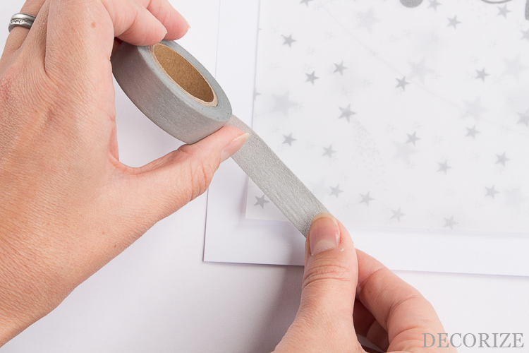- Schritt 2: Fixiert das Transparentpapier mit Hilfe des Washi Tapes auf der Vorlage, so dass beim Durchpausen gleich nichts mehr verrutscht