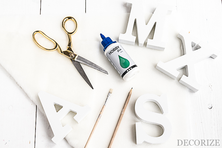 Wir haben Euch heute 4 kleine, feine Buchstaben mitgebracht. 4 Buchstaben für die Weihnachtszeit, die Ihr Euch entweder flauschig-weich mit künstlichem Fell bzw Plüsch oder mit Gold im Shabby Look veredeln könnt.
