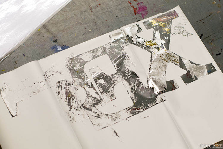 Dann könnt Ihr die Folie abziehen und werdet sehen, dass das Gold am Buchstaben haften bleibt. Und das nicht vollflächig sondern ungleichmäßig, was für den Shabby-Look so gewollt ist.